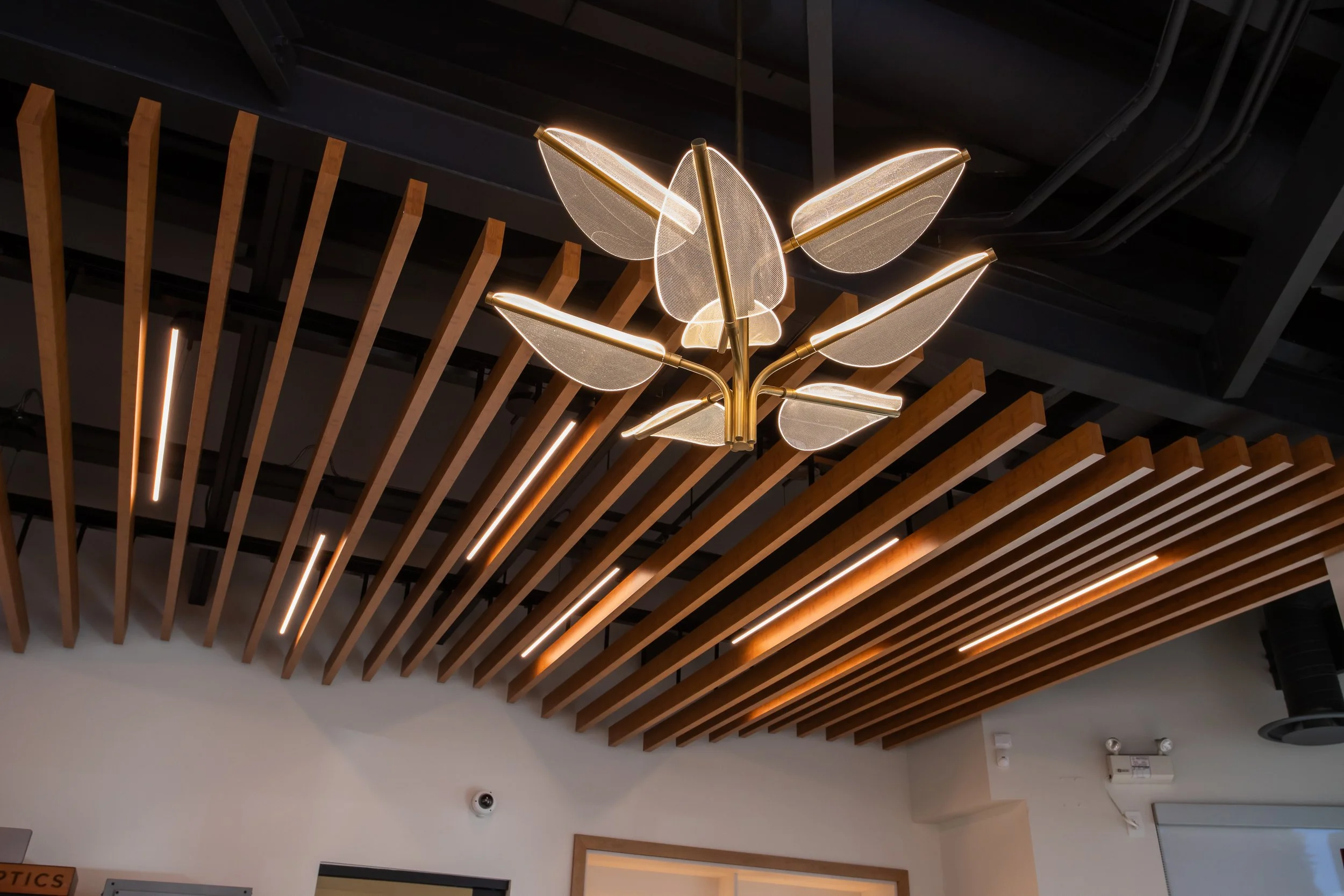 The client and builder approached us to help bring their vision for an elevated eye care clinic to life, creating a welcoming and elevated experience for patients and staff. We focused on sculptural lighting, a central curved sofa, and warm earth tones to add both artistry and comfort. The result is a space that feels inviting, modern, and thoughtfully designed to enhance the patient experience.